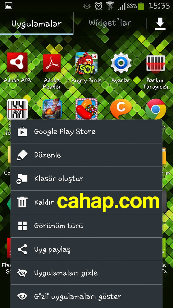 1. Resimde gördüğümüz gibi telefonumuzda ki seçenek tuşuna bastıktan sonra aşağıdaki menüden karşımıza gelecek olan klasör oluştur seçeneği ile ismini vereceğimiz klasörü oluşturuyoruz.